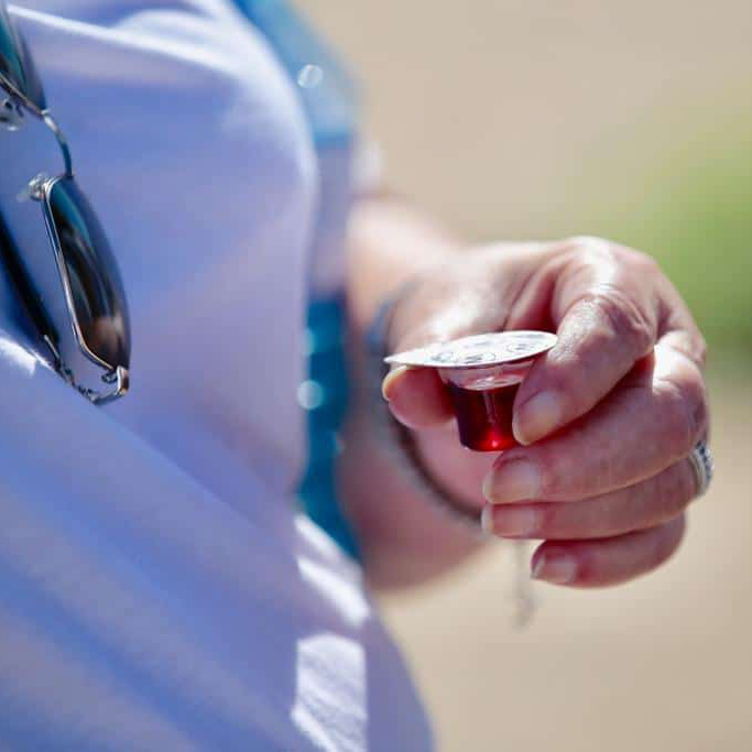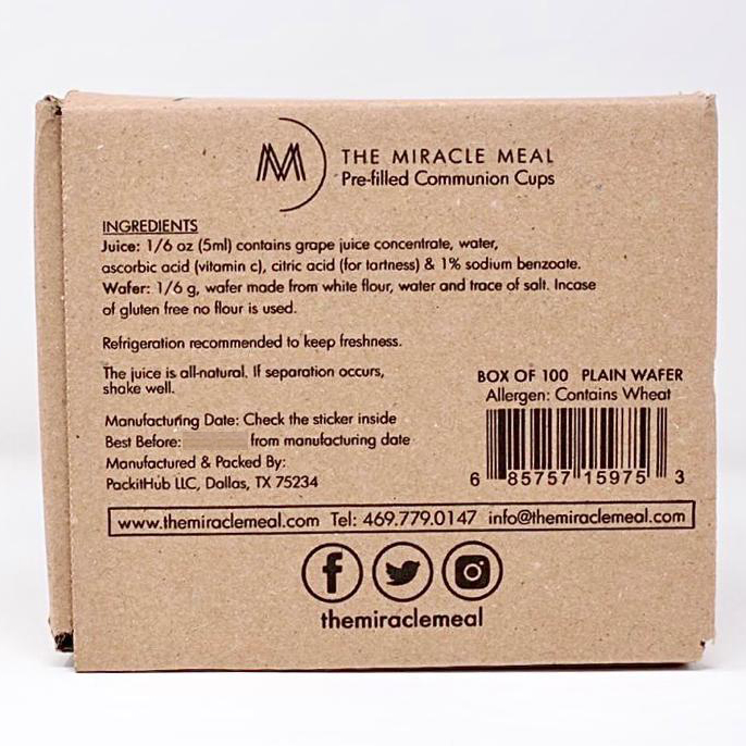 • The elements are prepackaged, with both wafer and juice in a single two-part container